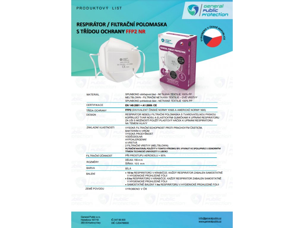 Respirátor GPP2 FFP2 NR (CE) - 5 ks