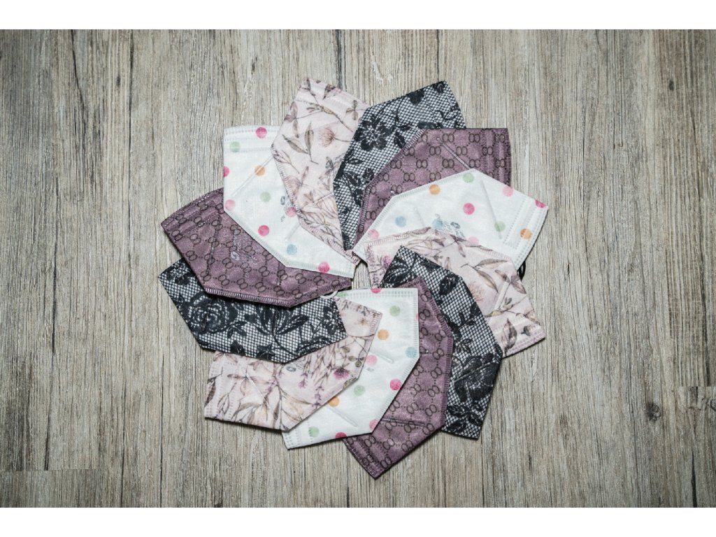 Respirátor s tvarovatelnou těsnící páskou kopírující tvar nosu a elastickou gumičkou k upevnění za uši.